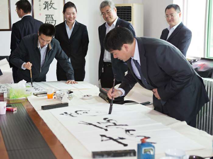 为弘扬传统文化,丰富员工业余生活,5月6日上午,半岛网站网页版页面登入-半岛online(中国)举办了首届书画艺术学习交流活动。本次活动邀请了中国书法家协会会员孟云飞博士、中国书法家协会理事张铜彦先生、中国书法家协会编辑出版委员会副主任王荣生教授、人民艺术家协会理事于瑛先生等国内知名书画大师,各位书画大师在活动现场进行了艺术创作表演,挥毫泼墨,交流技艺,为半岛网站网页版页面登入-半岛online(中国)留下了数十副墨宝,还对部分员工的书画作品进行了悉心指导。公司员工现场欣赏了书画大师的艺术创作,并聆听了有关书画艺术鉴赏知识的介绍,部分员工还在活动现场进行创作,听取书画大师的讲解示范和点评。